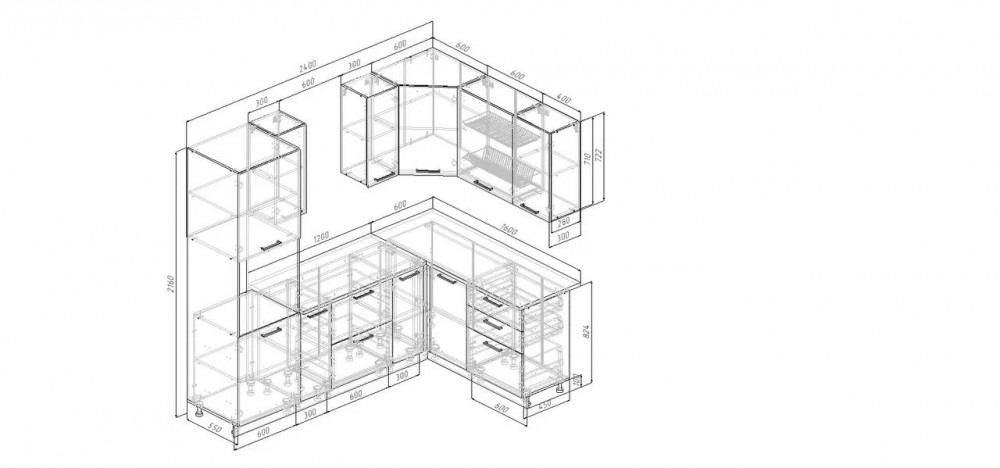 Фасады верхних модулей со свесом 12 мм дают возможность использовать без установки ручек.