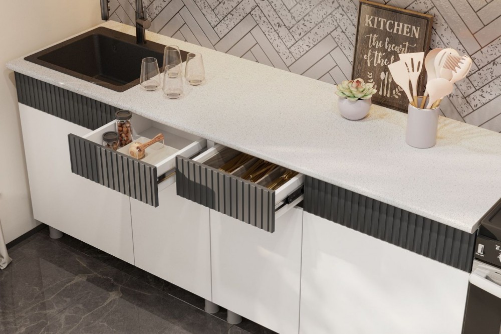 Кухонный гарнитур СОФИЯ 2.0м (Белый/Бланж/Графит матовый/Антарес)